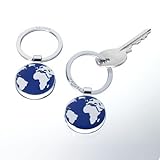 Schlüsselanhänger mit Weltkugel, Metallguß verchromt. Rund, blau-silber. Produkt von TROIKA.
