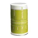 Breite: 5.2.Gewicht: 0.095.Farbe: grün.Durchmesser: 5.4.Hoehe: 9. Dieser immerwährende Kalender ist ein Tausendsassa ein Büro im Miniformat. Schreibtischutensilien verbergen sich platzsparend in der Kalenderdose. So lässt sich jeder Tag übersichtlich und sortiert beginnen. Eine Zierde für jeden Schreibtisch: schick, praktisch und aufgeräumt. Und Sie sind immer à jour! Die Kalenderdose mit 3 Containern beinhaltet Pins, Büroklammern, Gummiringe.